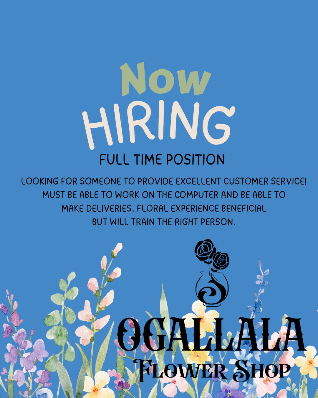 Ogallala Flower Shop is looking for a friendly and creative person to join our team!